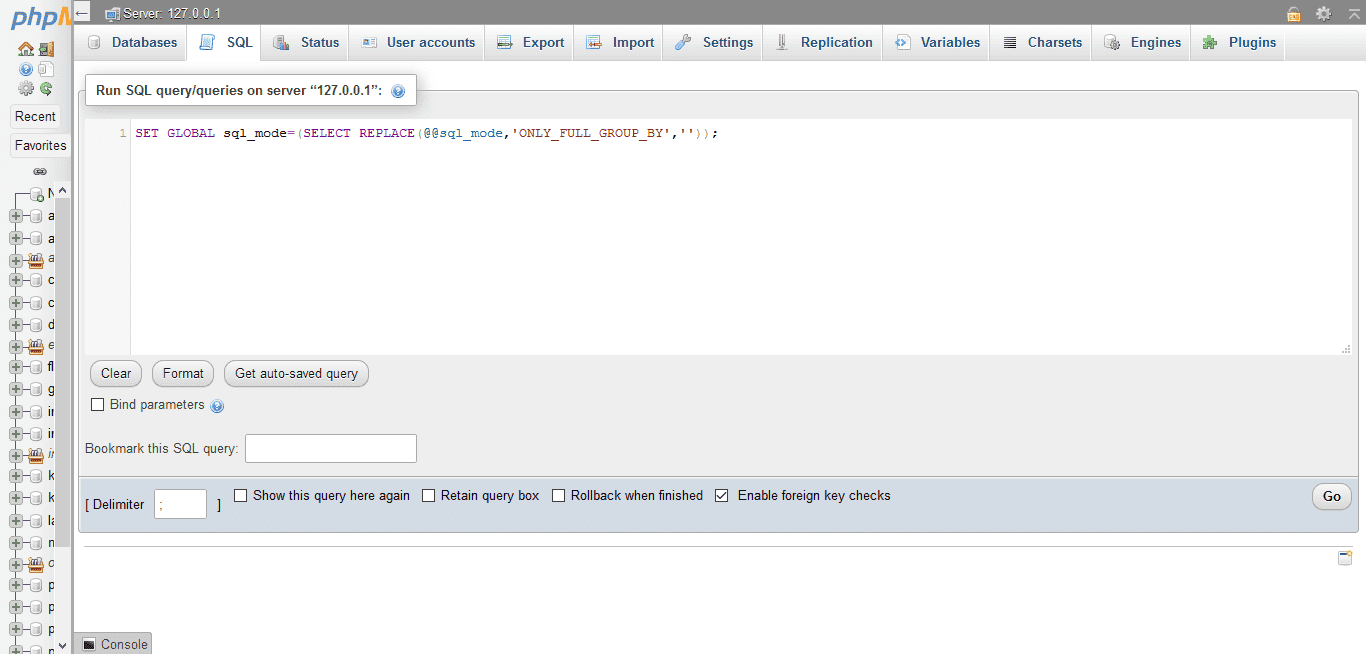 SET GLOBAL sql_mode=(SELECT REPLACE(@@sql_mode,'ONLY_FULL_GROUP_BY',''));