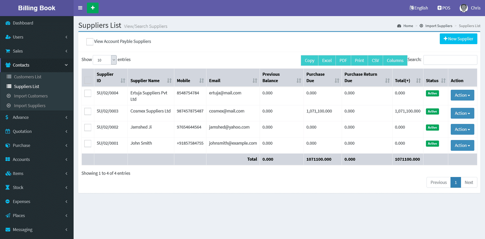 Suppliers -> Suppliers List -> Action Button -> Due Payments