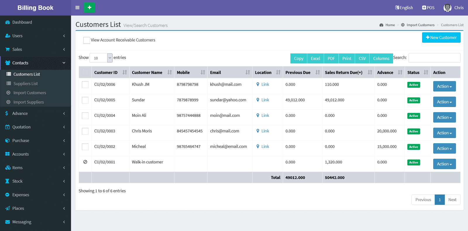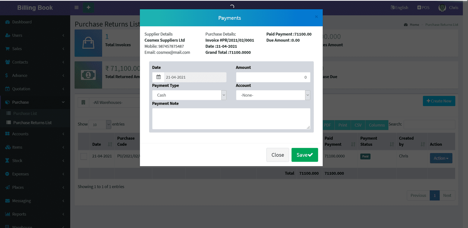 Billing Book is a PHP based web application software, where user can track and manage Items & Stock, Suppliers, Customers, Items Categories, Sales Invoice, Purchase Invoice, users and get all the reports which are require to your office with many more features. You can create any number of Warehouses and Users.