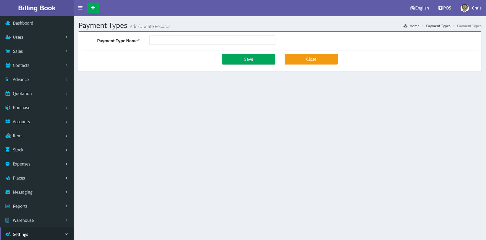Payment Types Add :