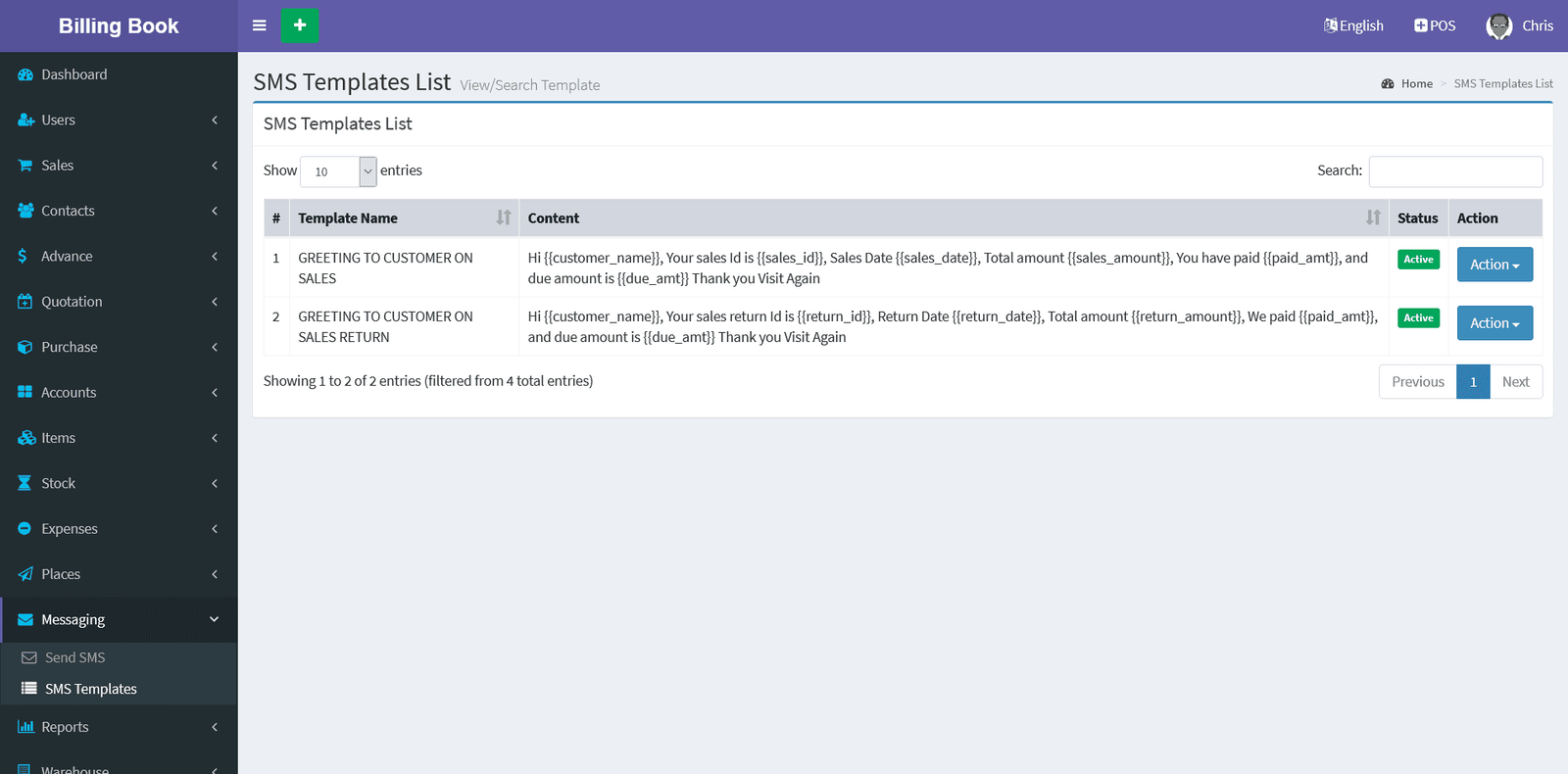 SMS Templates :